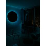 Cuando se junta la luna con el sol, eclipse de luna. Pieza de un metro de diámetro. Es una pieza unica, hecha a mano, con arena y pigmentos puros, expuesto a la luna, a la noche para atrapar secretos. El eclipse es una pieza que cuenta con luz led en una amplia gama de colores y luz blanca y cálida. Todo esto es controlado desde el celular bajo una aplicacion y es compatible con alexa. La luna esta llena de relieves y texturas y esta lista para colgar.