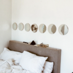 Abrazar cada una de nuestras fases, abrazarnos con nuestra luz y nuestra sombra. Así como la luna que es dual. 7 piezas hechas de arena y pigmentos puros sobre espejo en medida de 20 cms cada una. Las lunas son expuestas a la noche, y al sol para un secado natural. Piezas listas para colgar.