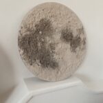 Luna fase llena, cuando la luna se llena de luz y la despide por cada crater y relieve, pieza de 60 cms, hecha con la luna en esta misma fase, intencionada. Pieza lista para colgar y cuenta con relieves.